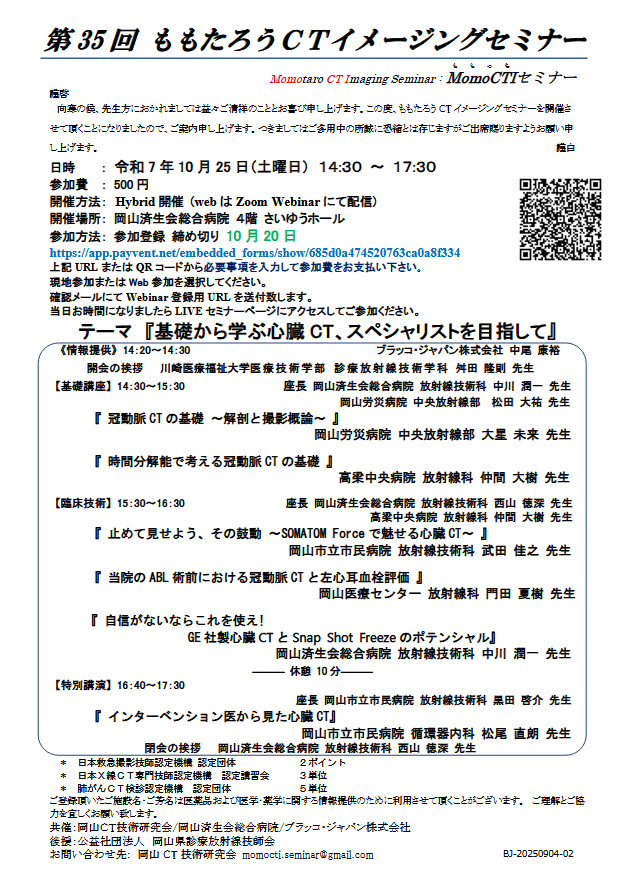 [お知らせ] 第35回ももたろうCTイメージングセミナー